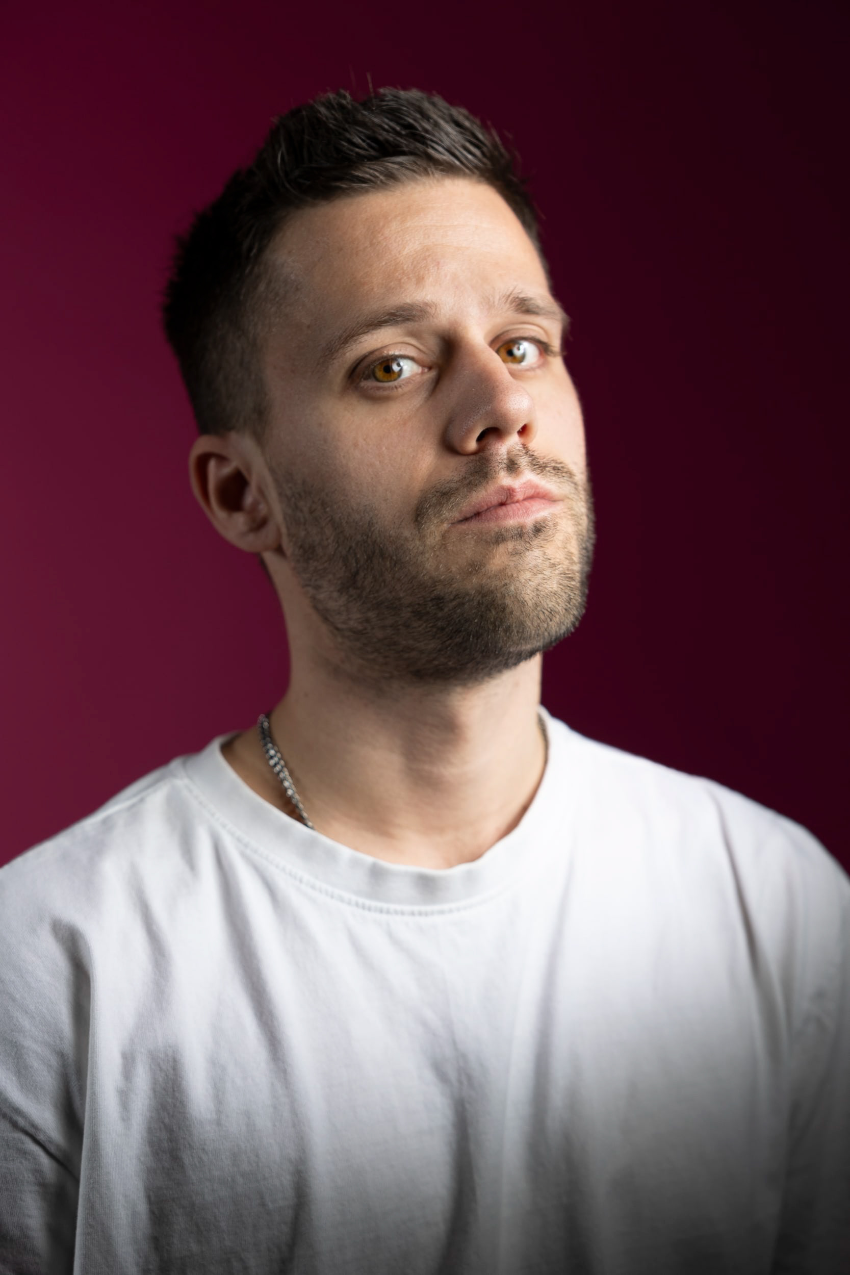 Portraits corporate et presse. Grâce à mon studio mobile, je mets en scène mes sujets en utilisant le décor et leur corps afin de réaliser des photos créatives et décalées.